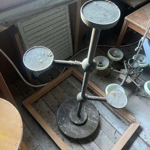 Metallinen vintage tyylinen teline kolmelle kukkaruukulle. Näyttää paremmalta kukkien kanssa!
