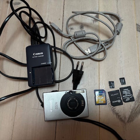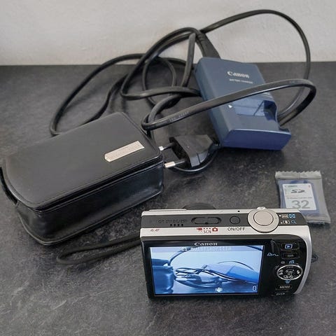 Upeassa kunnossa oleva legendaarinen Canon Ixus 70 digikamera sisältäen kaikki oheistarvikkeet (piuhat, laturi, akku, muistikortti).