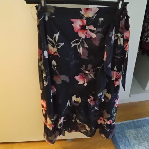 Paidan edessä hakas kiinnitys, aukeaa kokonaan auki edestä. Takana kuminauha rypytys. Hameessa pieni halkio, vetoketju takana. Sileää "silkki" materiaalia. Hame XS paita s. Voin postittaa, ostajalle postikulut. Paljon löytöjä myynnissä kannattaa kurkata ja tarjota hintaa!