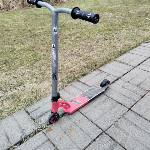 Tää ois pari vuotta käytössä ollu priima scuutti titanium T-tangol ja joillakin hyvillä ja komeilla osilla, aika kevyt on ja kaikki laakerit on kunnossa ja ei helise drop testis vaan on hyvä ja pehmee droppi, osat maksaa nykypäivänä joku 300e