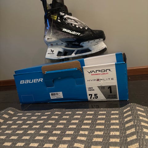Puoli kautta käytetyt Bauer Vapor Hyperlite 2 pro custom luistimet Fit 3 profiililla. Koko 41,75. Näissä jäykempi kenkä kuin kaupan malleissa joten pitäisi pysyä parempana pidempään. Normi malliin verrattuna läppä mukavampi ja sisusta luistimessa lock-fit pro joka pitää jalan paremmin paikallaan luistellessa.