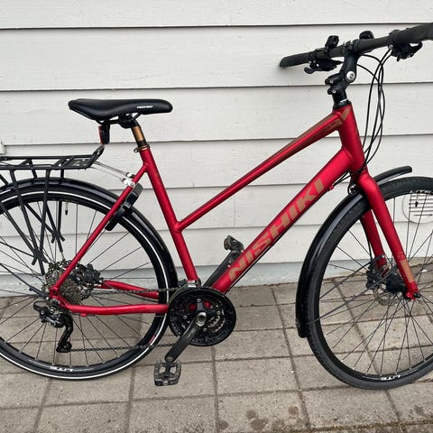Hyväkuntoinen hybridipyörä, 24 vaihdetta, tarakka ja runkolukko.
