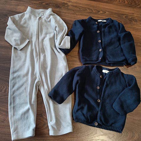Myydään hyväkuntoiset lasten vaatteet pakettina, koko 86. Trikoopaidat 3 kpl, 2 kpl neuletakkeja, farkut, 2 kpl haalaripukuja ja vuorellinen mekko. Yhteensä 15 eur.