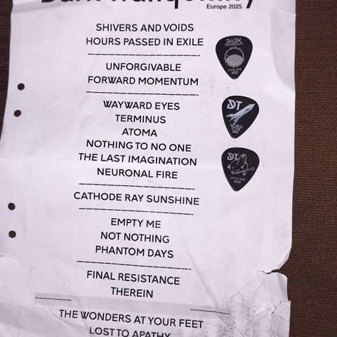 Myydään tarpeettomana kuvan mukainen settilista ja plektra