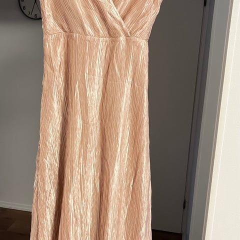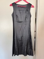 Uudenveroinen Nahe Finland-merkkinen, Suomessa valmistettu hopeanharmaa juhlamekko. Vain hieman rypyssä säilytyksestä. Sivussa vetoketju.