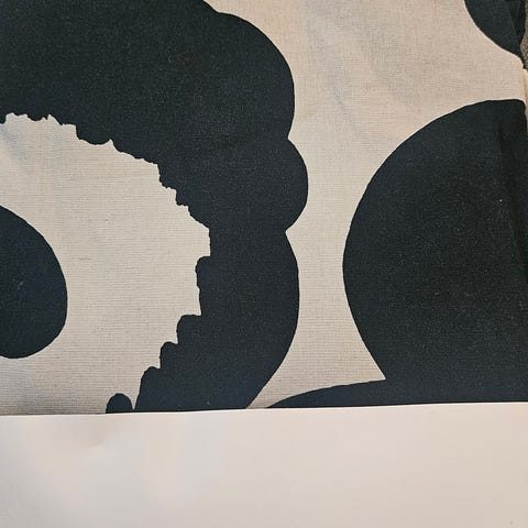 Marimekon tuplapussilakana ja 2 tyynyliinaa. Mustavalkoinen Kaivo kuosi. Valkoinen ei kirkas valkoinen, ehkä kuonnonvalkoinen. Pesty hajustettomalla pesuaineella.