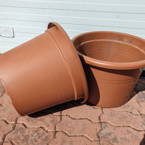Myydään isot kesäkukka-astiat, korkeus 60 cm ja halkaisija 39 cm. Yht 30 €