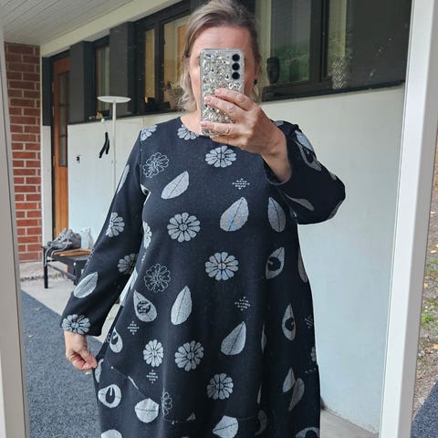 lämmin mekko, ruudullinen mekko, musta mekko, farkkumekko, pluskoon mekko, oversize mekko, tyylikäs mekko, syysmekko, talvimekko, mukava mekko, XXL, XL