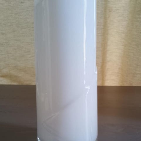 Kaunis Aalto-maljakko, opaali valkea. Kuvia astiasta ohessa. Vain kaksi noin 1 mm pienenpientä nirhaumaa yläreunassa. Itsellä ollut kynttiläalusena, kts kuva.