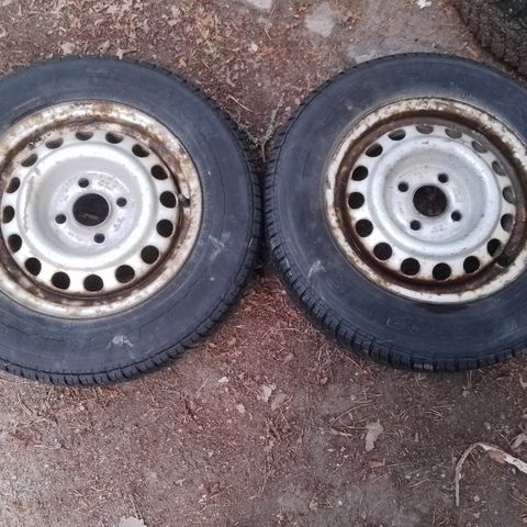 Kaksi vannetta, kerran käytetty. Pulttijako 4x100. Renkaissa 5 mm pintaa. Vaikka peräkärryyn.
