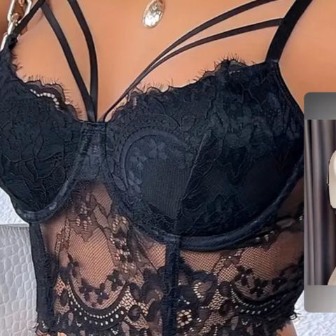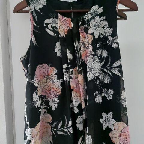 Kauniisti laskeutuva toppi edessä hieno koriste "solki" helma aaltoileva kaunis vaikka mustan jakun kanssa