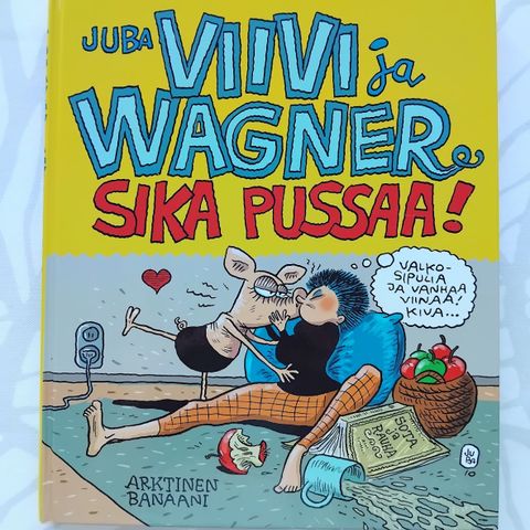 Myydään siistikuntoinen Viivi ja Wagner -sarjakuvakirja "Terassilla tarkenee" (2008). Kirja on pehmeäkantinen.