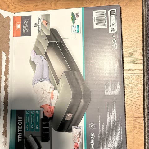 Puhallettava näppärä Ilmapatja vaikka varavuoteeksi. Menee pieneen tilaan. Koko L70xP190xK23. Uusi paketissa maksaa kaupassa 60 €