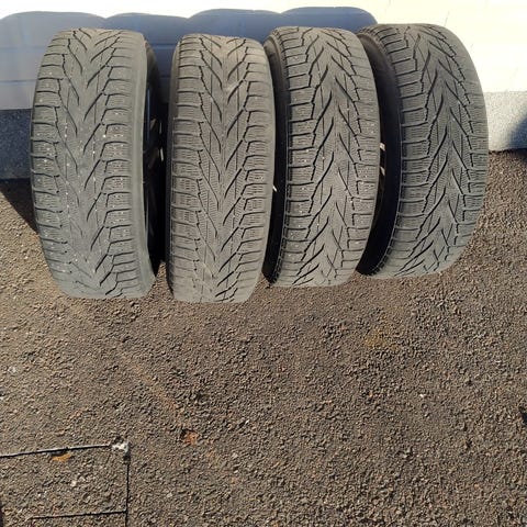 Volvon talvirenkailla varustetut pyörät ovat hyvässä kunnossa. Auto ei ajanut talvella, vaan se oli pysäköity autotalliin. Pyörät tuskin näkivät katua, joten ne säilyivät hyvin. Tinkiminen on paikallaan