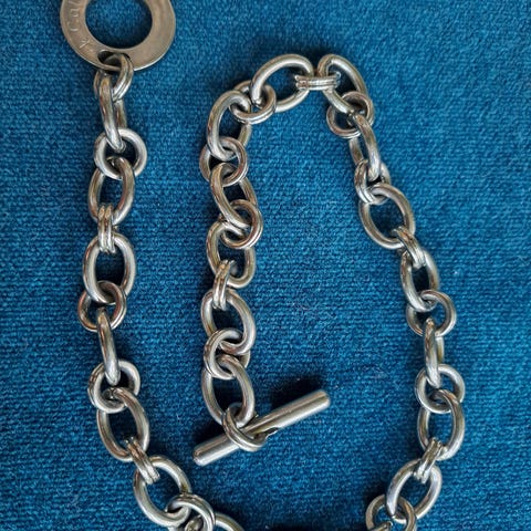Käyttämätön näyttävä teräksinen kaulaketju, paino 93 g, pituus 50 cm. Alkuperäinen musta säilytyspussi.