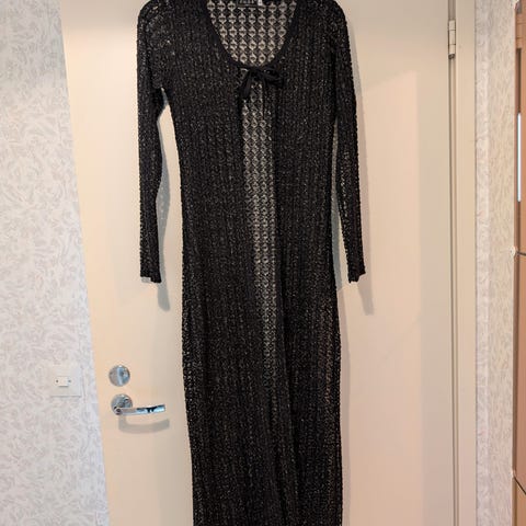 Topin tai mekon päälle. Pituus 68 cm. Napit, 6 kpl, jotka päällystetty takin pitsikankaalla.