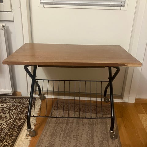 Kolmion muotoinen pöytä, esim. TV tasoksi. Kuljetus järjestyy Pirkanmaan alueella, jos niin sovitaan.