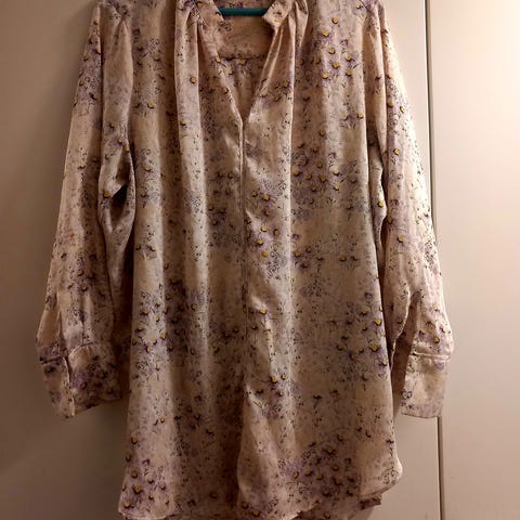 Soyaconcept merkkinen naisten kukkapusero. Koko XL, ehkä enemmän vastaa kokoa L. Viskoosia, 30°C pesu, hyvin laskeutuvaa materiaalia.