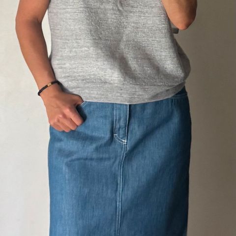 L Filippa K Alicia stretch farkkuhame puuvillasekoitetta, polvimittainen, ei halkioita. Käytetty muutaman kerran, kunto uudenveroinen. Pesty hajusteettomasti ja taloudessa ei eläimiä