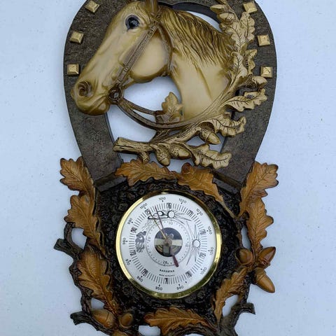 Antiikkinen barometri, 1900-luvun alku, Ranska. Mahonkia, kullattua messinkiä. Erinomaisessa kunnossa. Korkeus on 46 cm.