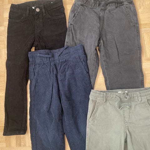 Vaatepaketti, housupaketti, housuja, farkut, samettihousut, vakosametti, vakosamettihousut, kangashousut. Polarn o pyret, Pop, H&M, Zara.