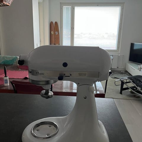 KitchenAid monitoimikone, malli 5KFPM775. Sisältää monenlaisia teriä ja lisäosia, kuvissa tiedot niistä. Vain muutamaa osaa käytetty pari kertaa, laite ollut pitkään käyttämättömänä kaapissa.