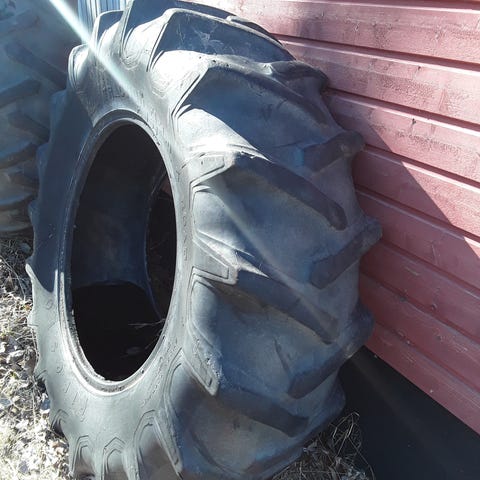Huonossa kunnossa, muutama paikka ja muutama reikä joista sisäkumi pullistelee. Reiät paikkaamalla ehkä vielä käyttöön ym. käyttöön.