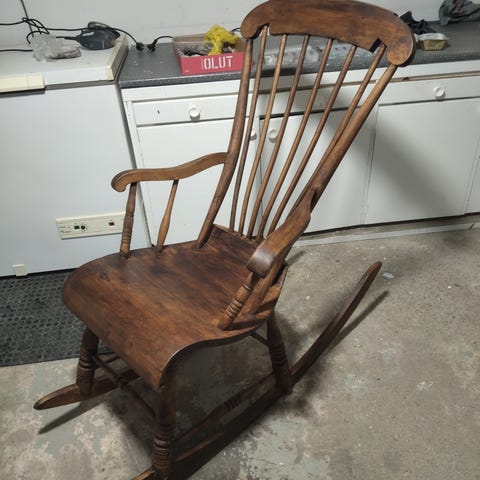 Myydään kuvanmukainen punaruskea, ehjä keinutuoli. Perintönä saatu, alkuperästä ei tietoa.