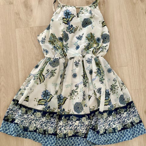 Sanitan kaunis kesämekko joustavasta kankaasta. Koko: xs.