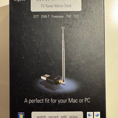 Myydään kimpassa kaksi USB-televisioviritintä tietokoneelle — digisignaalin vastaanottoa ja tallennusta varten.