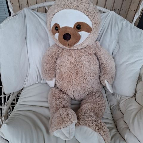 Myydään jättimäinen laiskiaispehmo. Korkeus n. 100cm ja leveimmältä kohdalta leveys n. 50cm. Ollut sisustusesineenä, ei leikitty. Superpehmeä pinta. Ei eläintalous.