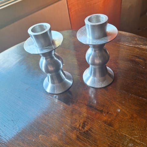 Myydään kaksi kynttilänjalkaa. Korkeus 4,5 cm. Hinta 2€/kpl.