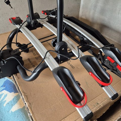 Motezz-merkkinen, tilaa säästävä säilytysteline kahdelle pyörälle tai muulle tavaralle. Tuetaan kattoon ja lattiaan (pakkauksen kuvissa näkyy). Jäänyt käyttämättä, vaikka pakkaus näyttää hieman nuhjuiselta.