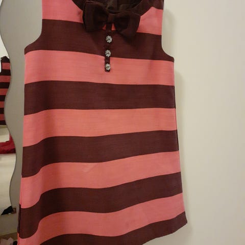 Myydään hauska paikkamekko noin 104 - 110 cm. Sopii vaikka peikolle, noidalle tai Peppi Pitkätossulle. Käytetty joskus virpomusasuna. Mekon olkapää-helmapituus noin 64 cm. Takasauma vähän purkautunut ja siinä pieni rispauma, jonka voi halutessaan ommella piiloon. Tosin peikoille tai noidalle sopii sellaisenaankin!