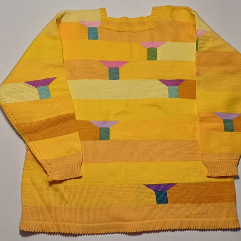 Neulekoneella kudottu. Uusi. Kai-kai 63 cm. Olka-helma 74 cm. Olka-ranne 50 cm.