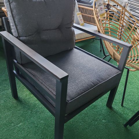 2-istuttavan lepotuolin istuinosa on polyrottinkia ja runko terästä. Mukana 8 cm paksut polyesteripehmusteet. Tuolin leveys 130 cm, istuinsyvyys 66,5 cm, korkeus 150 cm. Painoraja 220 kg.