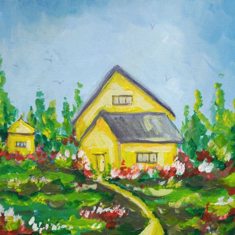 Kesäinen akryylimaalaus kangaspahvipohjalla 2022, koko 20×20cm. Lisää maalauksia: www.taidesivut.net/dariadash/taidemyynti