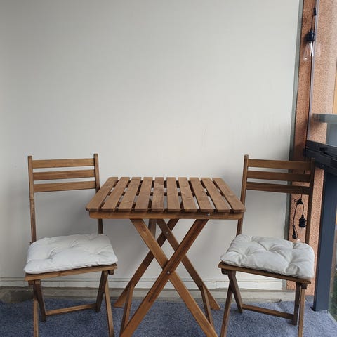 Kestävä kokoontaitettava pöytä on valmistettu luonnollisesta FSC-sertifioidusta akaasiapuusta. Mitat 70 x 70 x 75 cm. Esikäsitelty läpikuultavalla ebonyn värisellä petsillä. Painorajoitus 75 kg.