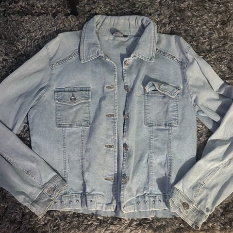 Uudenveroinen, turkoosi (väri on luonnossa hieman tummempi) farkkutakki, DressIn, koko 38/40. Takin pituus 62 cm, hihan pituus 61 cm ja takin leveys kainalon alta 51 cm. Materiaali joustavaa puuvilla/elastaani. Takissa on taskut.