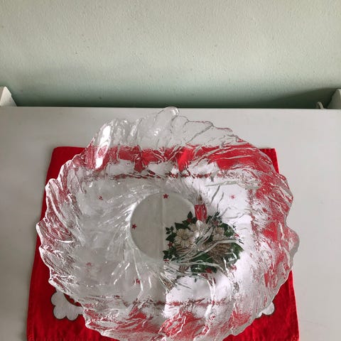 Virheetön, Merilasi laakea lasimalja. Halkaisija 340mm, korkeus 75mm.
