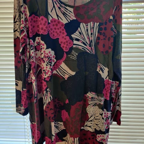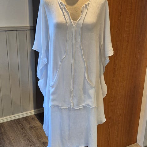 Oranssi - värikäs väljä rento tunika bikini cover tai paita. Upea kirjava kuviollinen kuosi ja hapsut helmassa. Super pehmeä. One size.