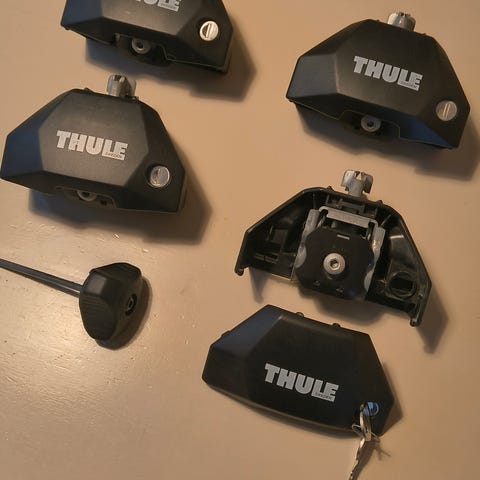 Thulen kattokaidetelineet. Kahdet avaimet. Olleet 2016 Rav4:ssa. Putken Pituus 128. Hyvä kunto.