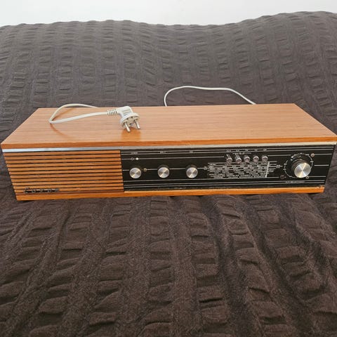 Luxor vintage FM/AM radio, varustettu virityskiekolla ja kaiuttimella.