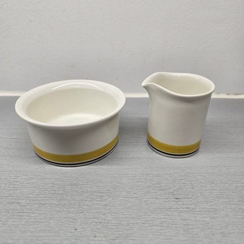 Muodon suunnitellut Peter Winguist ja koristeen Inkeri Seppälä Leivo. Valmistettu aikavälillä 1973-1979. Korkeus n.7cm ja halkaisia n. 6 cm.