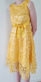 Myydään kuvan mukainen uudenveroisessa kunnossa oleva Mingnelin juhlamekko. Kesäisen kaunis keltainen kukkamekko. Takana vetoketjukiinnitys. Vyötäröllä silkkinauha.
