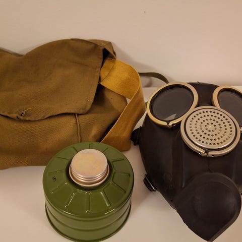 Kaasunaamarilaukku kaasunaamarilla ja suodattimella.