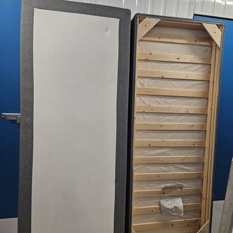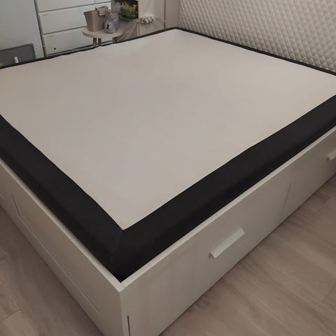 Sänky kolmella aluslaatikolla. Pituus 2m, leveys 0,80m ja korkeus 0,50m.