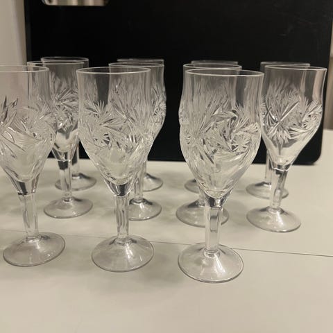 Myydään k. 16,3 cm h. 8 cm kristallilasit 5 kpl.