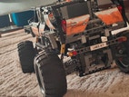 Kaikki osat tallessa tarroineen. Kuvassa kasattu muutama musta ja harmaa palikka väärinpäin, mutta kaikki löytyy. Tarrat myös. Paristot juuri vaihdettu. Vinssin naru vaihdettu kun se on hajonnut ajan saatossa.