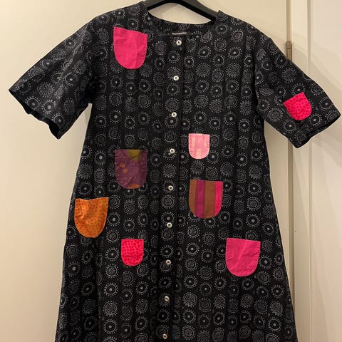 Ihana, Samu-Jukka Kosken suunnittelema lyhyt mekko. Vuorellinen, ohut kangas. Mukana kangasvyö, voi käyttää myös ilman vyötä tunikamaisesti.